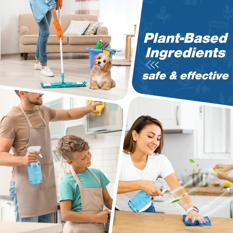 - 🌱 Natural Cleaning Power, Zero Harsh Residue: Safe for kids, pets, and the environment, this multi-surface cleaner is crafted from plant and mineral-based ingredients, free from phosphates, parabens, ammonia, VOCs, chlorine bleach, and phthalates. Certified by the EPA as a safer choice, cruelty-free, and vegan-friendly, this multi-purpose cleaning spray delivers strong cleaning without compromising on health