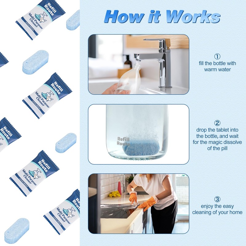- 💧 Simple, Budget-Friendly: Enjoy this cleaning splash spray by dropping a tablet into warm water—within 20 minutes, you’ll have a powerful, 16 oz multi-purpose cleaning spray compatible with any spray bottle. The no-rinse foaming formula makes it quick to use—simply spray, wipe, and enjoy!