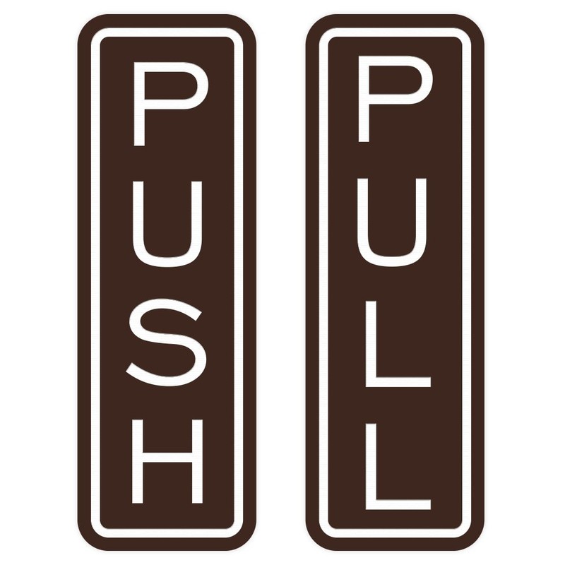 All Quality Classic Vertical Push Pull Door Signs - Great for Glass Doors | Professional Looking Signs | Easy Installation Includes Double-Sided Foam Adhesive Tape (Dark Brown) - Medium (1 Pack)