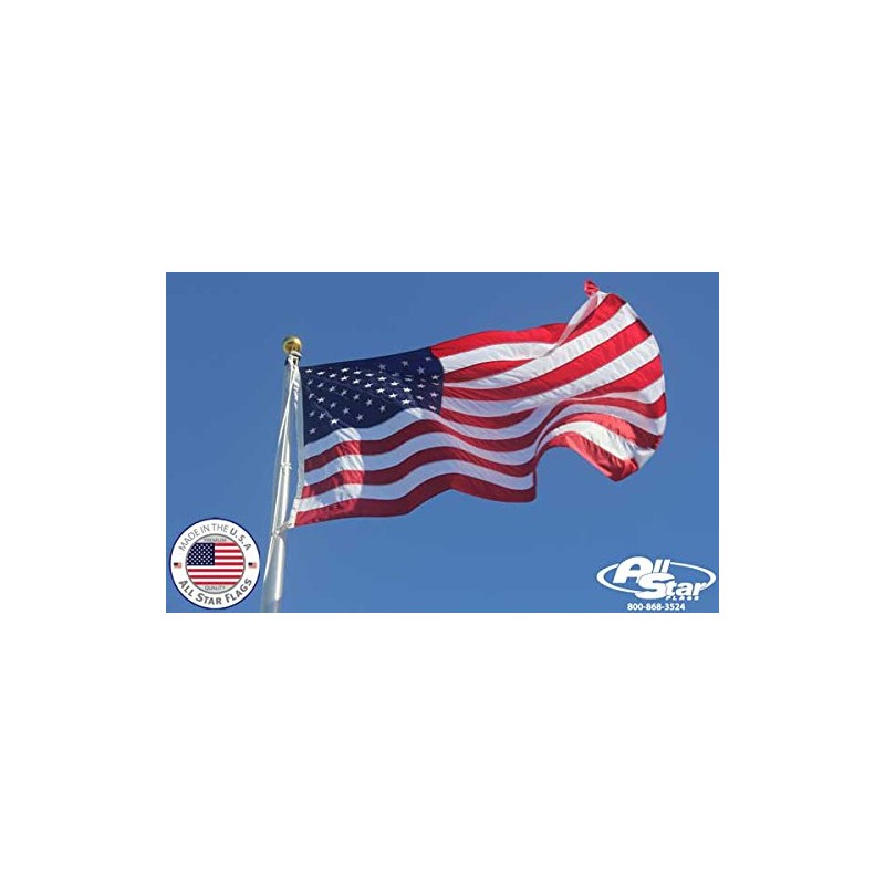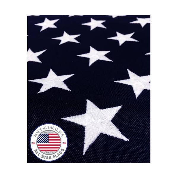All Star Flags Heavy-Duty American Flag 5x8' -100% Made in The USA- Durable, Long Lasting, Polyester Fabric - Embroidered Stars, Sewn Stripes, 4 Rows of Lock Stitching on The Fly End, High Wind Usage