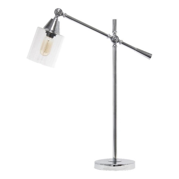 Practical and elegantly designed, this desk lamp can move up and down to the exact height in your home OR office to properly lighten up your space! The base of the lamp is smoothly finished and paired with a clear glass shade to optimize the light output you seek. Available in a variety of finish options, you're sure to find the complimenting piece for your living room, office, or bedroom.