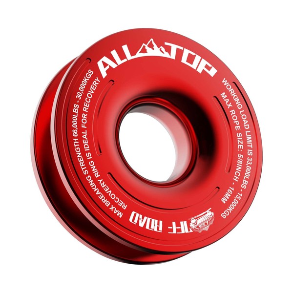 ALL-TOP Recovery Ring 66000 LBS Winch Snatch Towing Ring, Tackle Pulley System, Rope Retention Safety Strap Included, Red