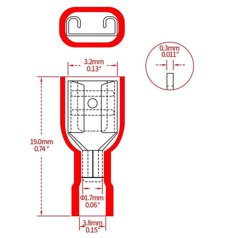 All Trade Direct 100 x Red 6.3mm Female Fully Insulated Spade Connector Push On Car Radio Speaker Crimp Terminal