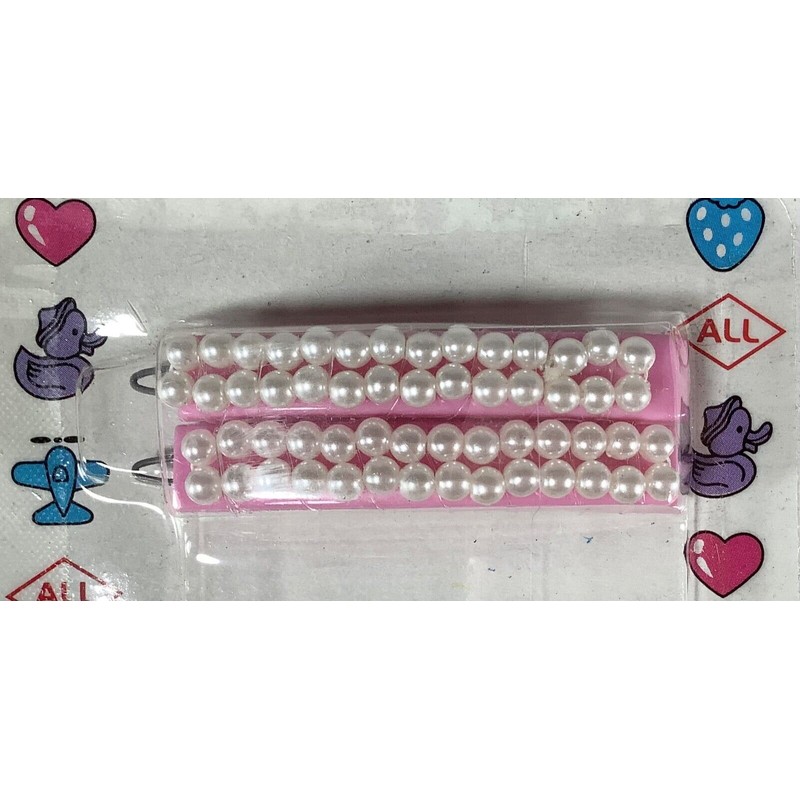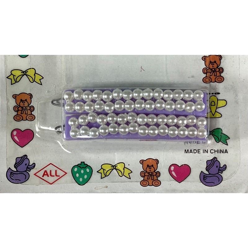 Vintage ALL Plastic Hair Barrettes Pink Green Purple Yellow Faux Pearls NOS Unopened