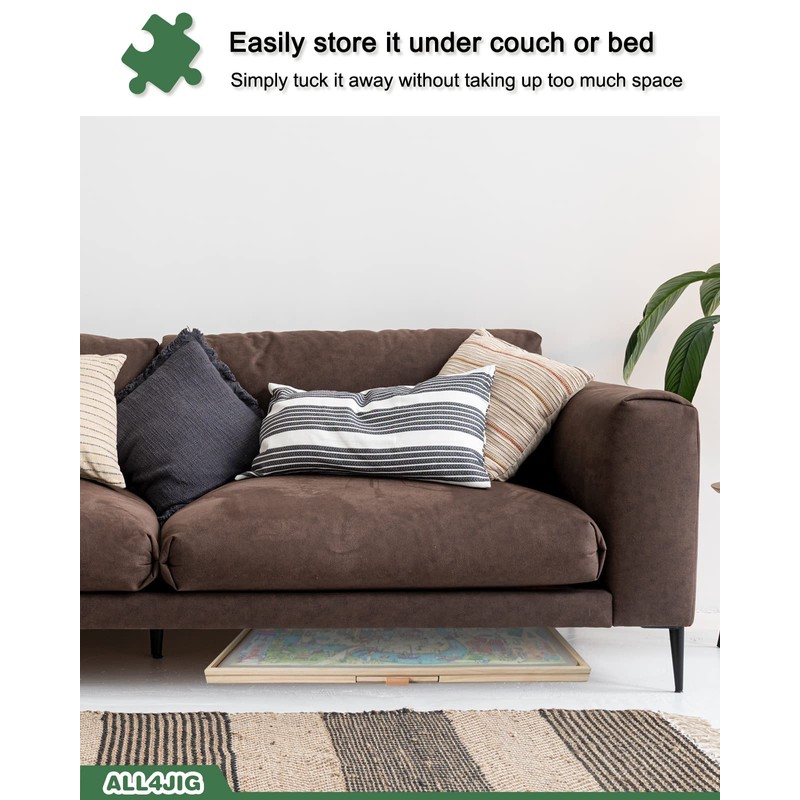 - 5s Easy to Stow Away & Transport PuzzleEasy lift, lightweight and balanced for quick storage.You can place your puzzle table onto any surface, countertops, coffee tables, beach blankets or even the floor.When you need an extra space for seating or dining,Just simply cover your puzzle with the puzzle cover,close the drawers and move it away under a couch or bed can your puzzle be well-stored and safely kept easily in a few seconds.