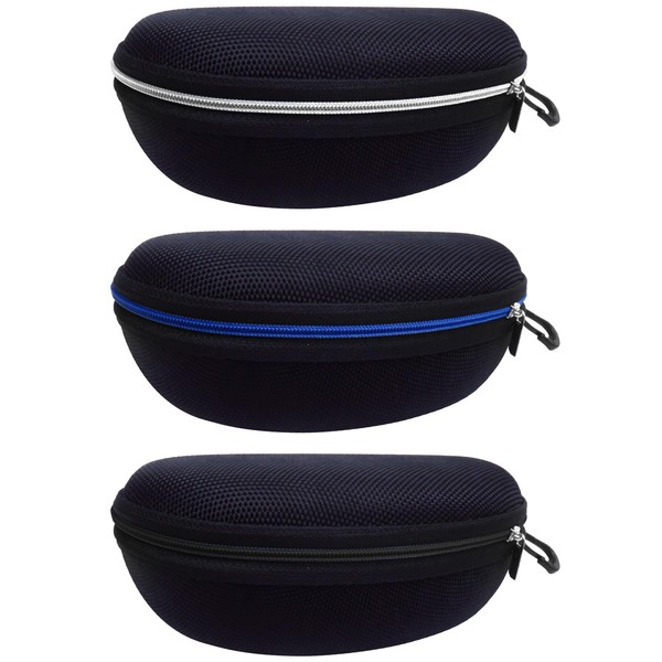 alladaga Pack of 3 Glasses Case with Zipper and Plastic Carabiner Clip, Black+blue+sliver