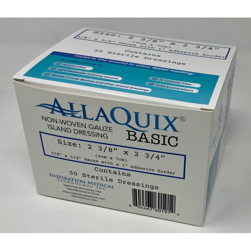 AllaQuix Basic Non-Woven Sterile Gauze Island Dressing (Box of 25) Advanced Wound Care – Medical-Grade Adhesive Gauze Pads (2 3/8" x 2 3/4" (Box of 50))