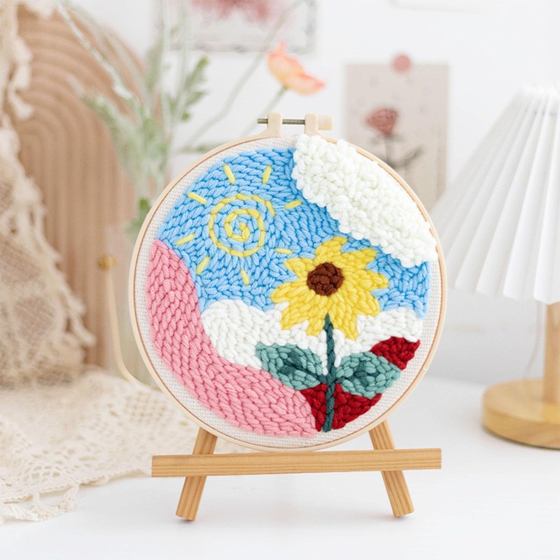 - Punch Needle Embroidery Kits: including 3 x embroidery cloth with pattern, 3 x plastic embroidery hoop, 3 x English instruction, 1 x punch needle, 3 pack enough yarns.