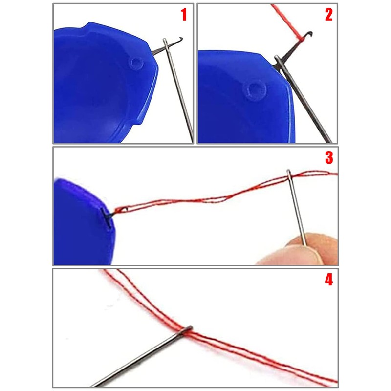 - Simple to use: Simple operation and makes needlework faster and easier. Just pass the hook of the sewing threader through the eye of the needle, then hang the thread on the hook, and finally pull the thread from the eye of the needle.