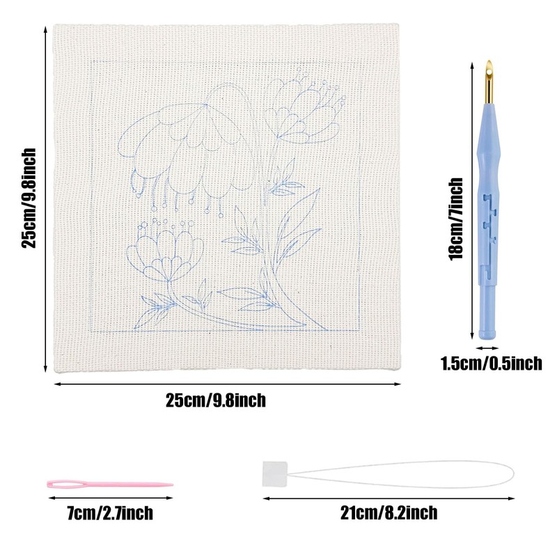 - Punch Needle Embroidery Kits: including 1 PCS wooden frame, 1 set color yarn, 1 PCS punch needle, 2 PCS plastic embroidery needles, 1 PCS instruction.