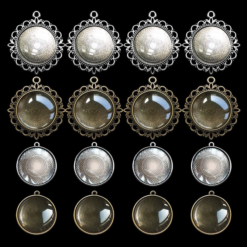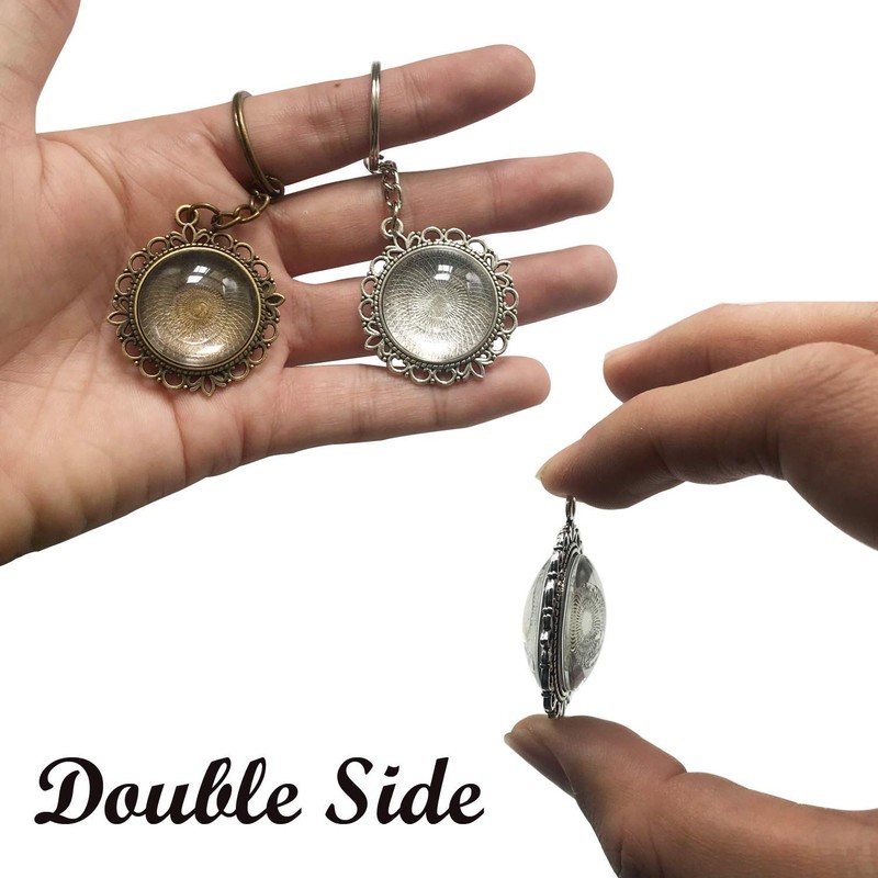 - Abundant set: 16 PCS double-sided pendant trays in 2 style, 2 color, 32 PCS glass cabochon, 10 PCS key ring.