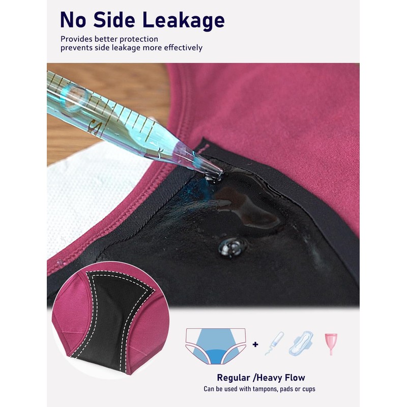 - No Side Leaks: Stretchy waistband and high cut leg opening provide a secure coverage, accompany with the no side leaks and leakproof technology, the reinforced edges of the crotch panel efficiently prevent side leakage without stain.
