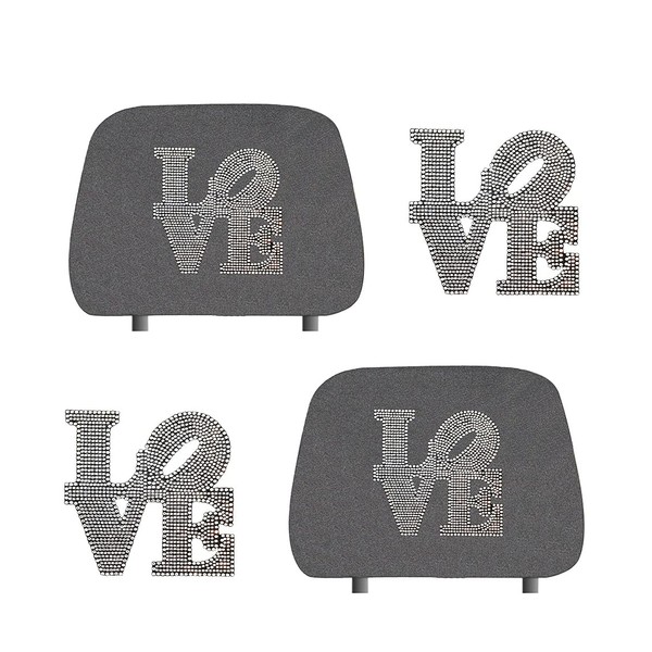 ALLBrand Universal Car Truck Crystal Diamond Bling Rhinestone Studded Seat Headrest Covers - Pair (Silver Love-Grey)