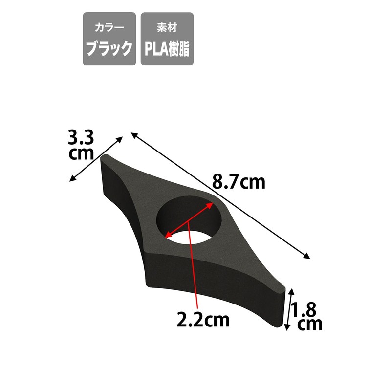 - [Product Details] Product Contents: Main unit x 1, Size: Width 3.4 inches (8.7 cm), Height 1.3 inches (3.3 cm), Hole Size: 0.9 inches (2.2 cm), Color: Black, Material: PLA resin