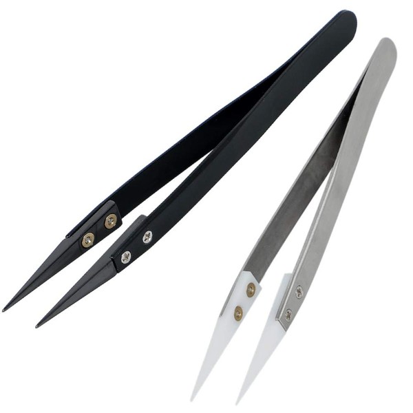 AllBright Precision Tweezers, Tweezers, Ceramic, Soldering, Tools, Electronic Crafts, Precision Machinery, Anti-Static, Plastic Model, Heat Resistant, Non-Magnetic, Set of 2