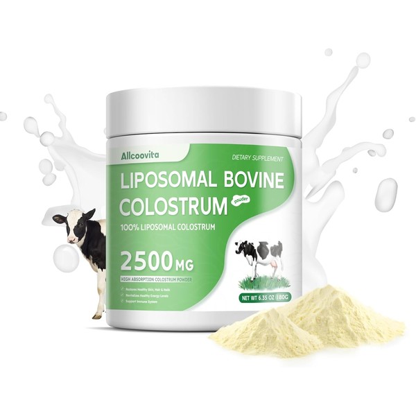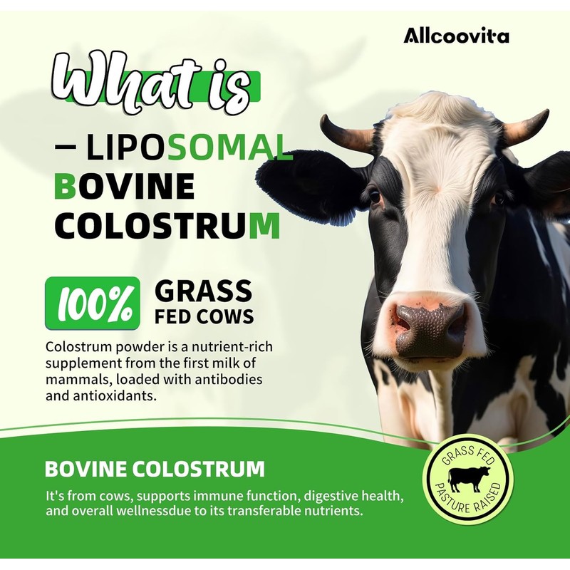 Allcoovita,Liposomal Bovine Colostrum Powder – Pure Grass-Fed Colostrum for Gut Support, Immune Health & Hair Growth – 72 Servings per Bottle, 180g / 6.35oz