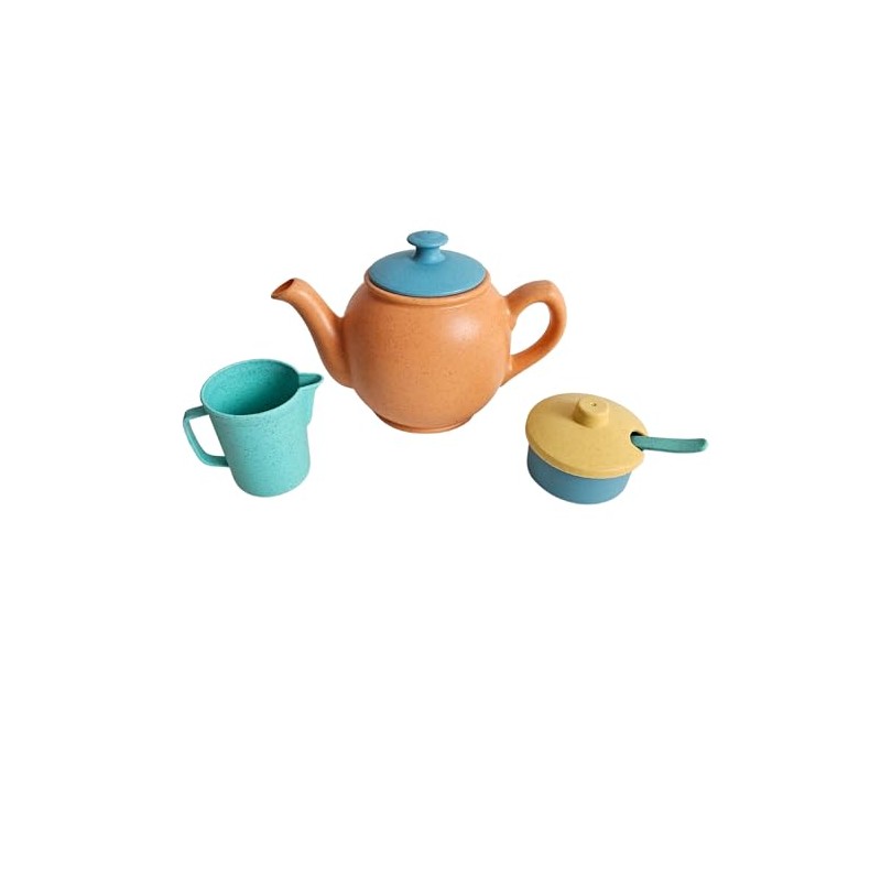 alldoro 60422 Tea Set with Jug - Set of 15 for Children's Kitchens, Made of Plastic Wheat Straw Mix, Eco Friendly