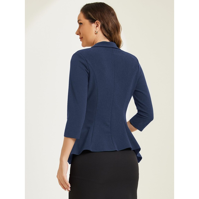 Allegra K Classic Open Front Blazer Jacket for Women's Draped Collar 3/4 Sleeve Ruffle Jacket Outerwear Navy Blue L