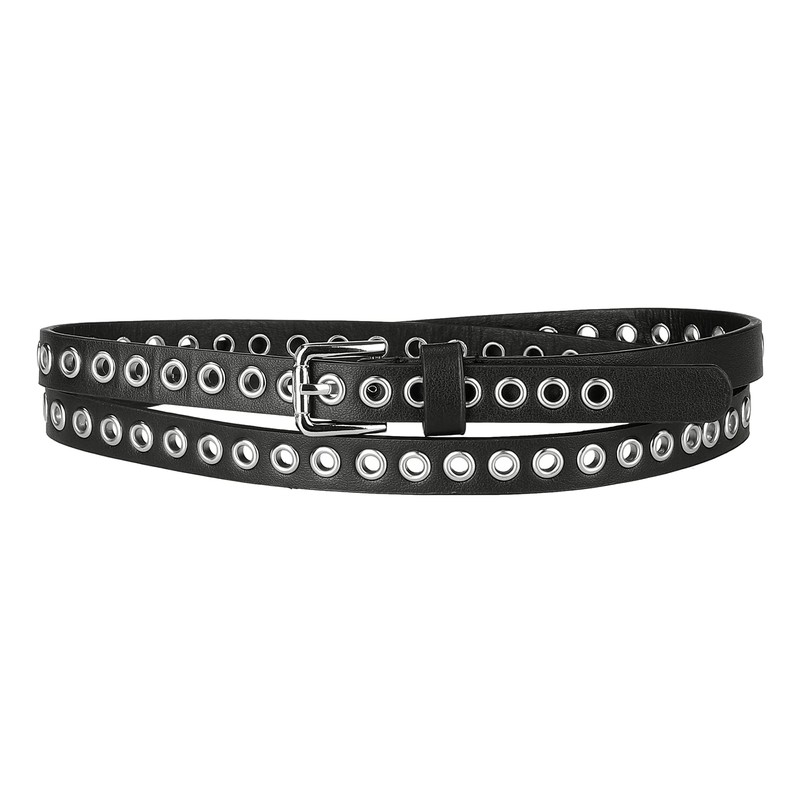 Allegra K Grommet Belt Leather Skinny Plus Size Waist Belts for Women Punk Rock Style Black 104.5cm/41.14''