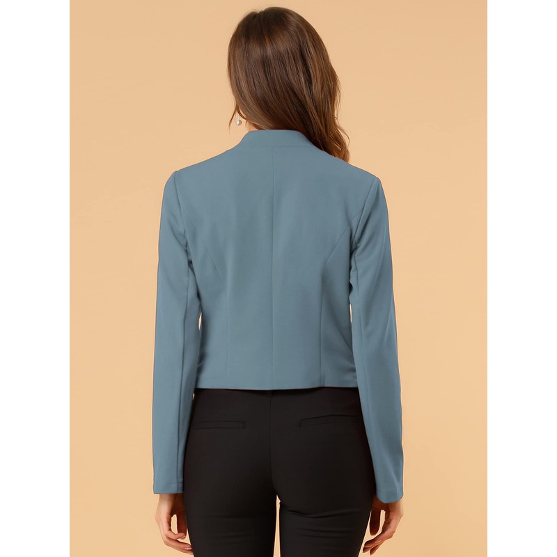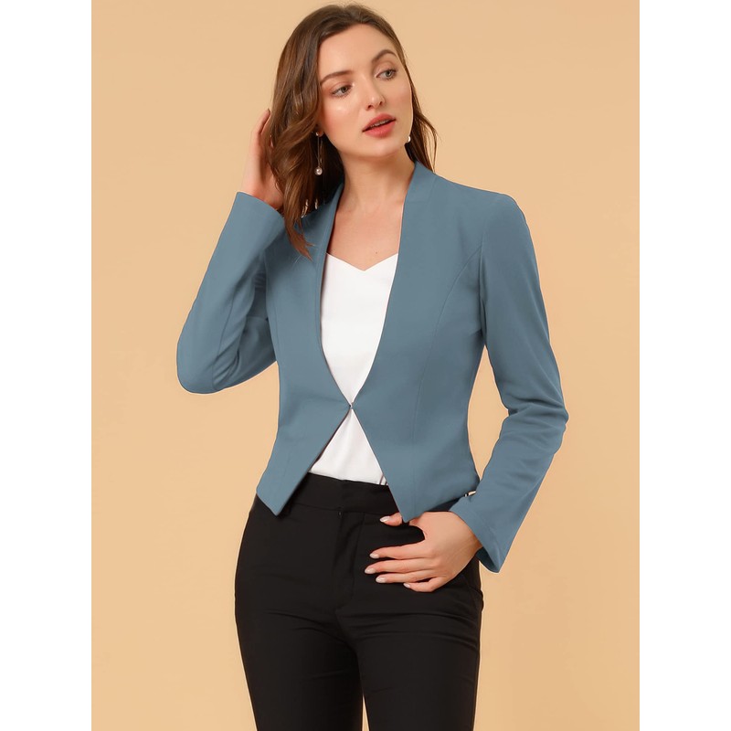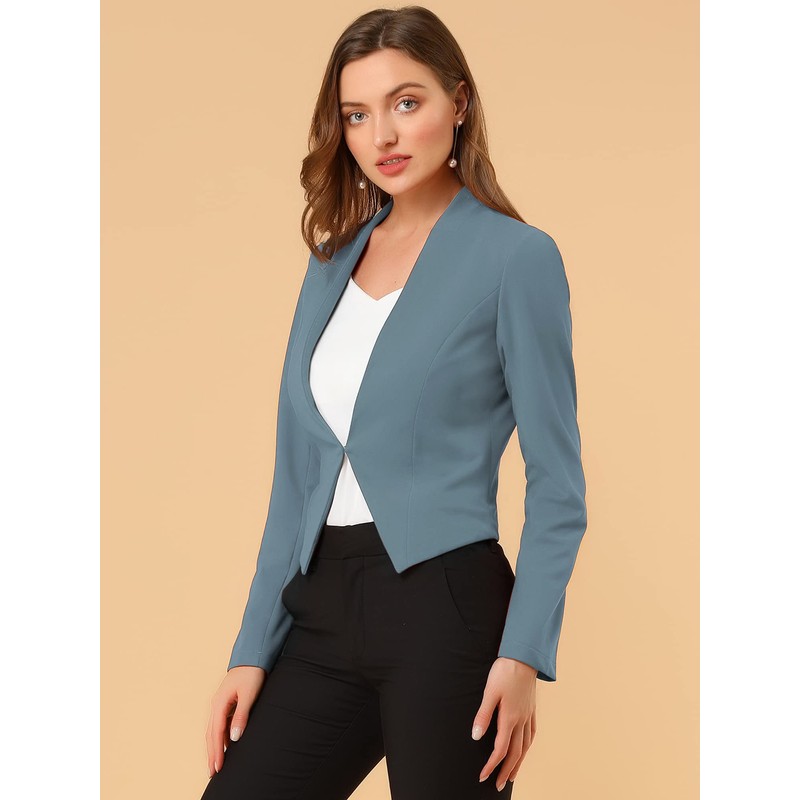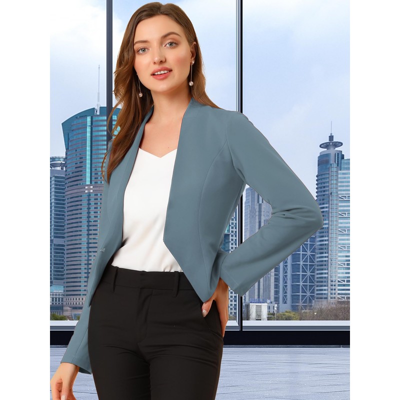 Allegra K Women's Collarless Work Office Business Casual Cropped Blazer Grey Blue Large
