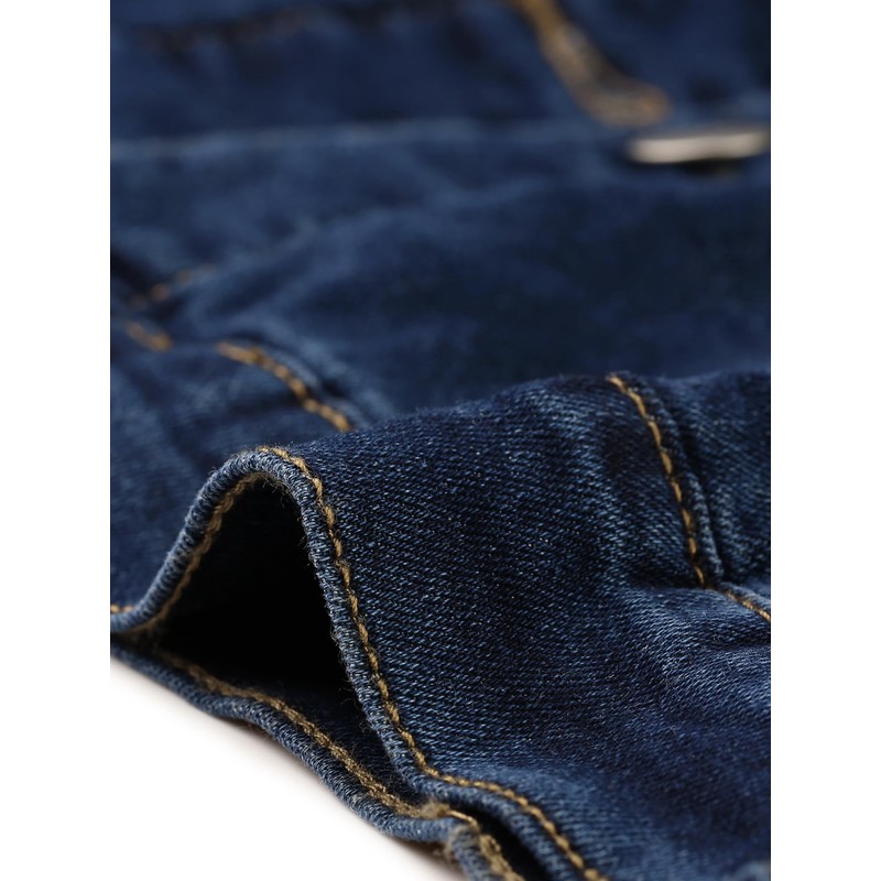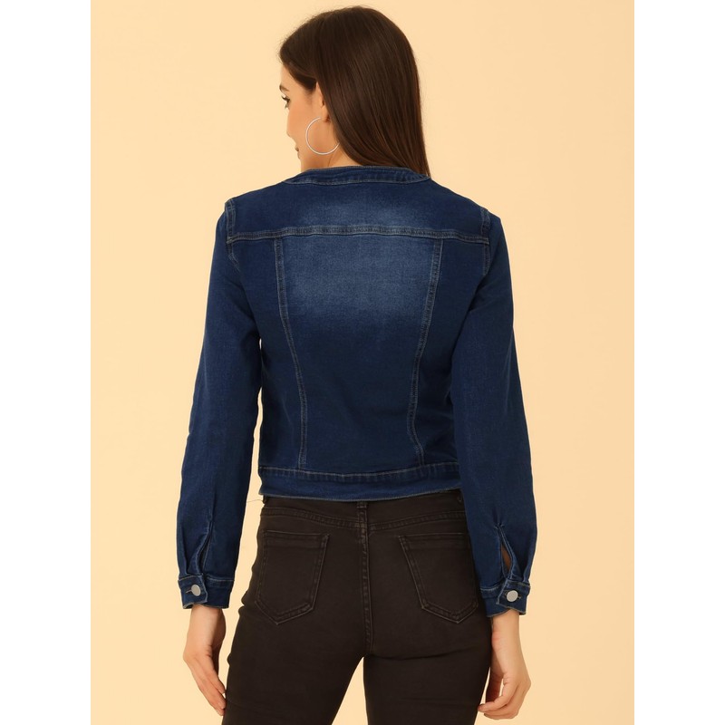 Allegra K Women's Denim Jacket Button Down Collarless Long Sleeve Jean Jackets Small Deep Blue
