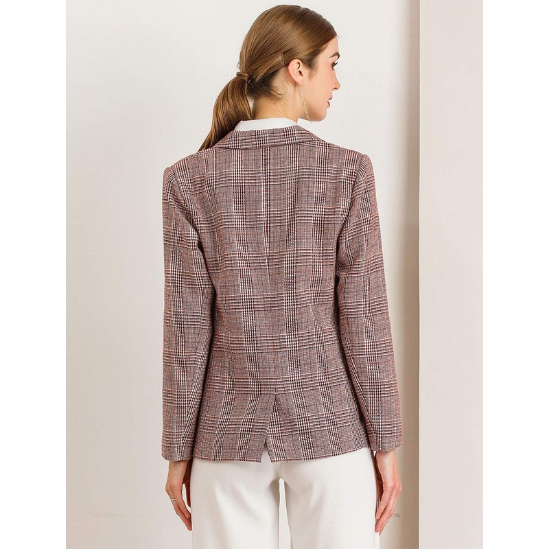 - Long Sleeve, Padded Shoulder, Flap Pockets, Plaid Blazer, Single Front Button Design, Work Suit Jacket