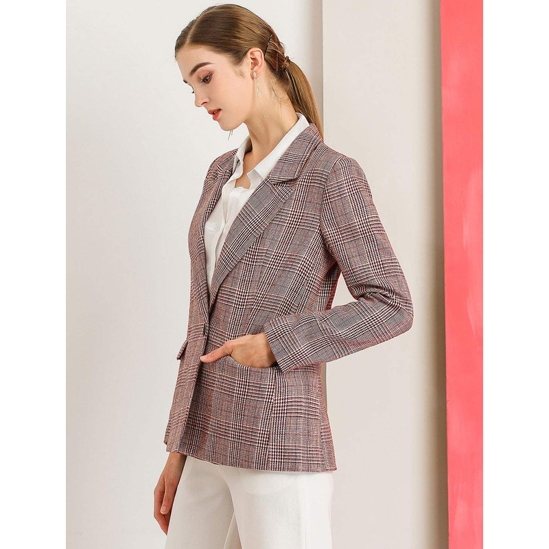 Allegra K Women's Notched Lapel One Button Boyfriend Blazer Suit Plaid Blazer Jacket Medium Burgundy