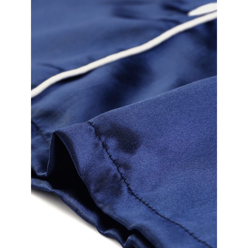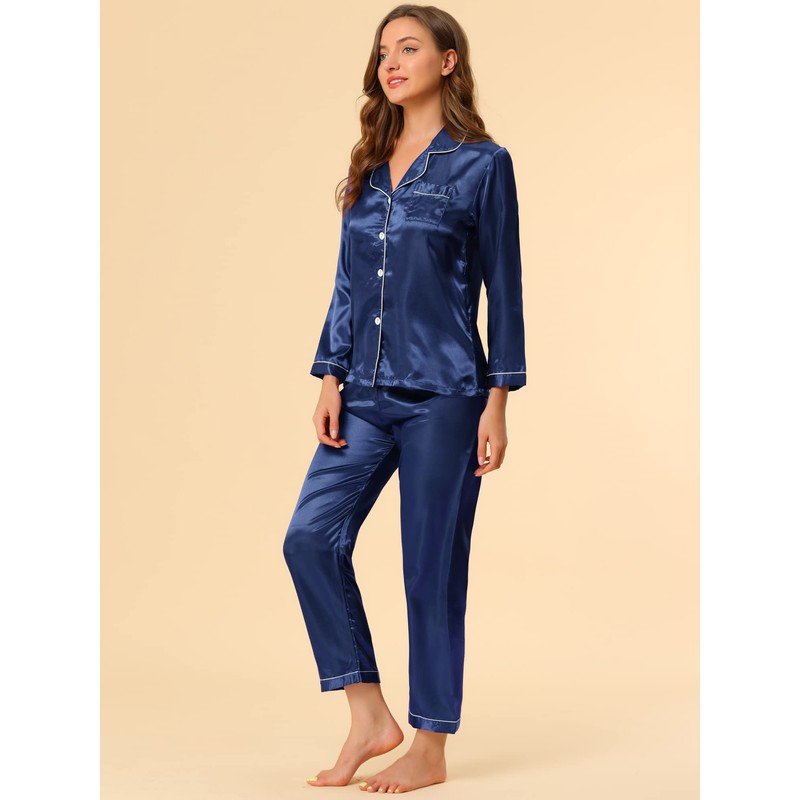 Allegra K Women's Satin Night Suits Valentine's Day Button Down Pjs with Pants Silky Lounge Pajama Sets X-Small Dark Blue