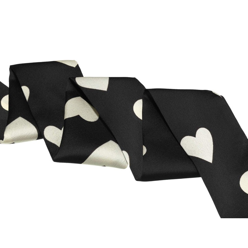 Allegra K Women Skinny Ribbon Neckerchief Heart Pattern Narrow Hair Wrist Scarf Headband Handbag Handle Wrap Black Heart L