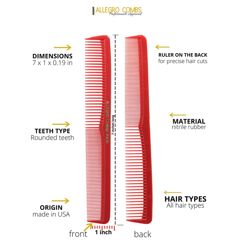 - Allegro Combs 400 peines de corte de pelo están hechos de hule de nitrilo. No hay plástico como el otro, esto hace que sean duraderos. Calidad 100% profesional para combinar rigidez y flexibilidad adecuadas.