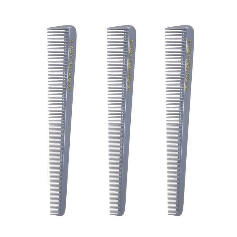 Allegro Combs 450 peines cónicos para cortar el cabello, peinetas de peluquería para mujer, peines de bolsillo para hombre, fabricados en los Estados Unidos, 3 piezas. (Gris)