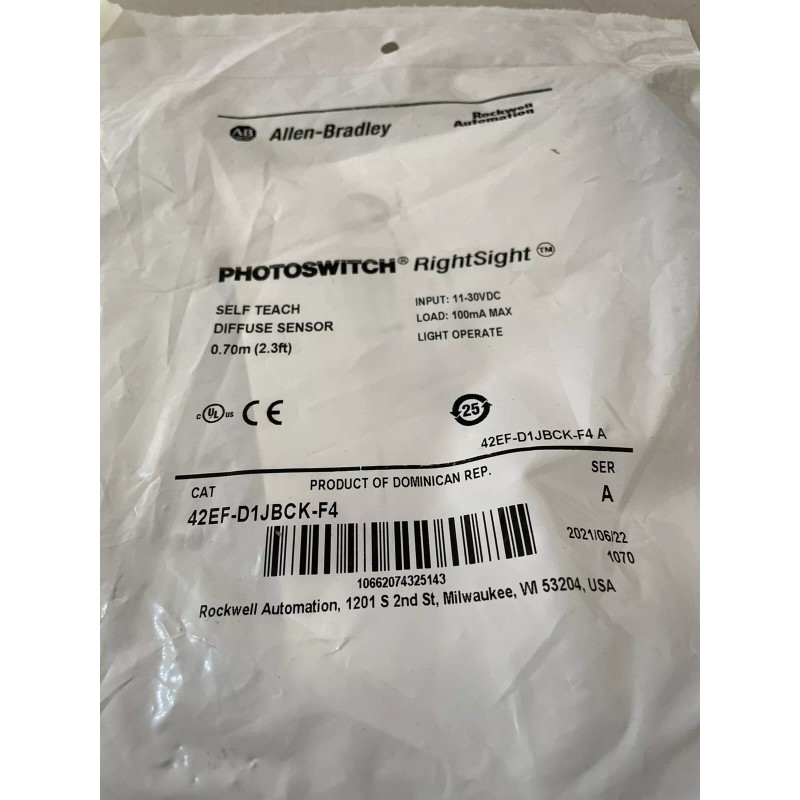 Allen-Bradley New Sealed Allen Bradley 42EF-D1JBCK-F4 PhotoSwitch Rightsight Diffuse Sensor