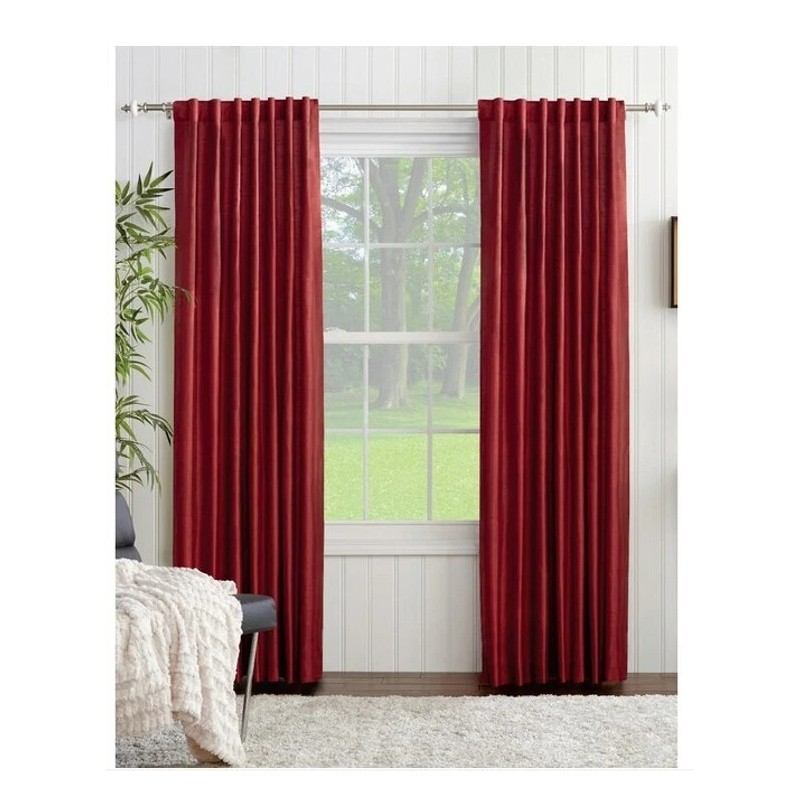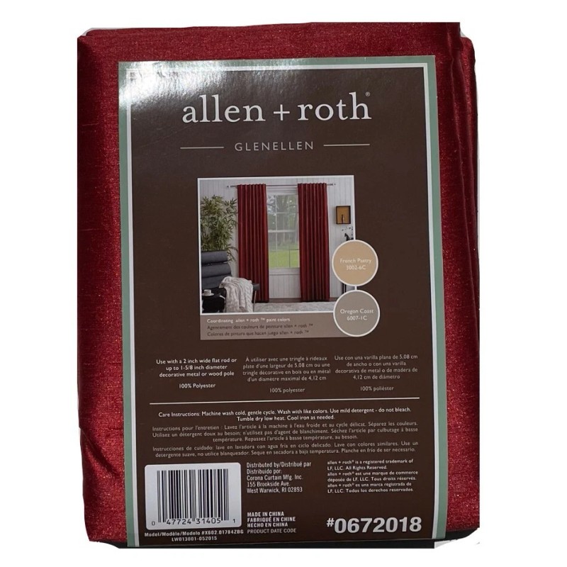 Elevate your home decor with the Allen + Roth Glenellen 84" Red Polyester Back Tab Lined Window Curtain Panel. Its rich red hue adds a bold splash of color to any room, complementing a variety of styles from traditional to contemporary. The faux silk texture lends a touch of elegance, while the light filtering capability ensures a comfortable level of brightness in your living space. Crafted with quality in mind, this curtain panel features a convenient back tab heading for easy mounting on your window frame. The size, a generous 52 inches wide by 84 inches long, offers ample coverage and versatility for various window shapes and sizes. Care is a breeze with machine washable fabric, ensuring that your curtains remain fresh and vibrant.