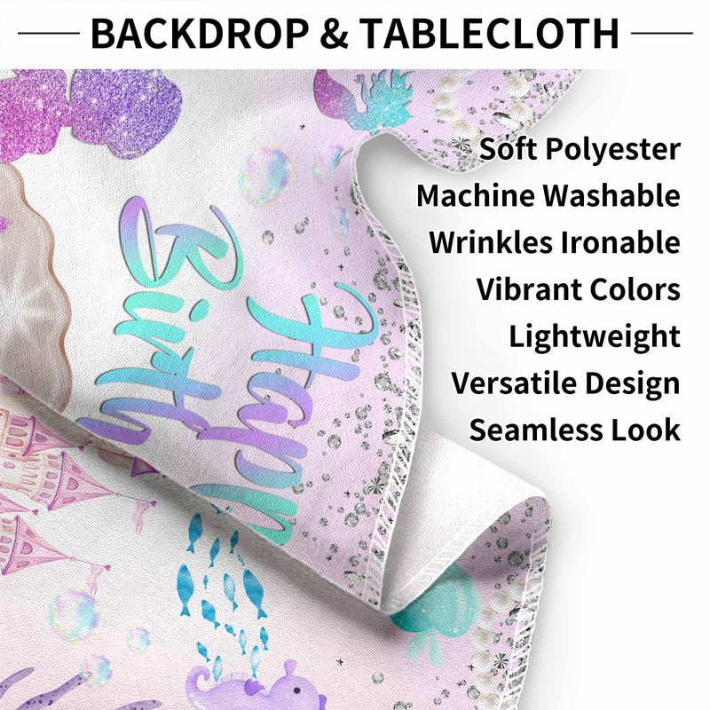 Allenjoy Under the Sea Mermaid Theme Birthday Party Supplies Decorations Backdrop for Girl Banner Photo Shoot Booth Props Photography Background,7pcs Foam Board Cutouts,1pc Tablecloth,1pc Backdrop