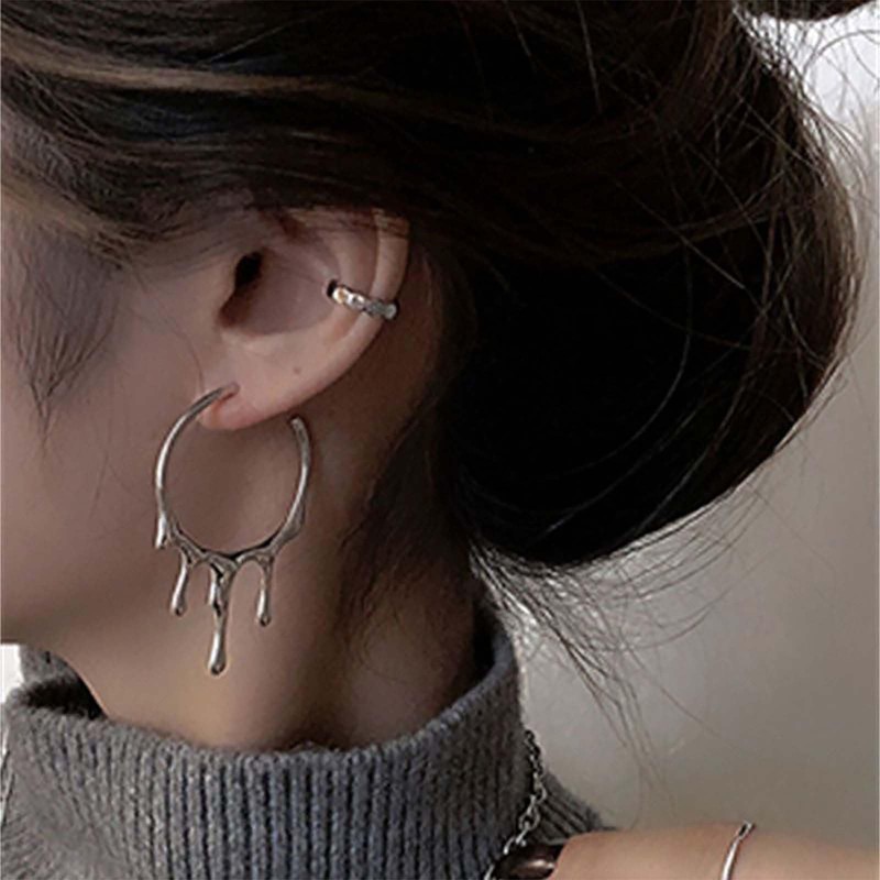 Allereya Punk Dripping Hoop Earrings Silver Dripping Earrings Irregular Melted Earrings Liquid Hoop Earrings Dripping Liquid Earrings Jewelry for Women
