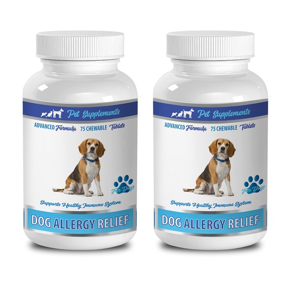 Allergy for Dogs - Natural Dog Allergy Relief - Supports Healthy Immune System - CHEWABLE - Turmeric Dogs - 2 Bottle (150 Chews)
