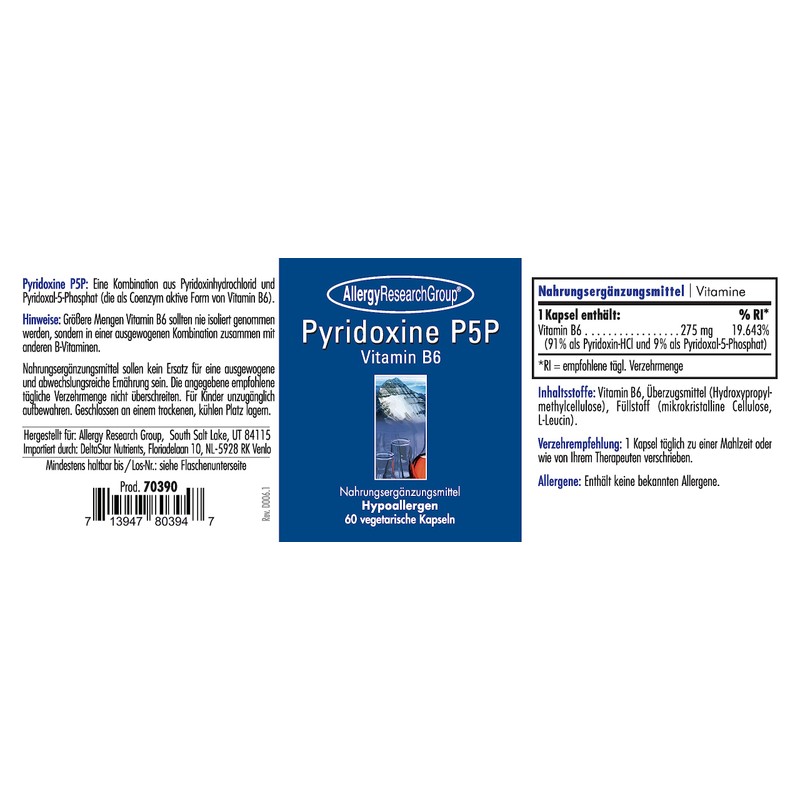 - Allergy Research Group Pyridoxine P5P provides both pyridoxine hydrochloride and pyridoxal-5-phosphate (P-5-P), the coenzyme or the "activated" form of B6. This product provides 275 mg of vitamin B6 per capsule.
