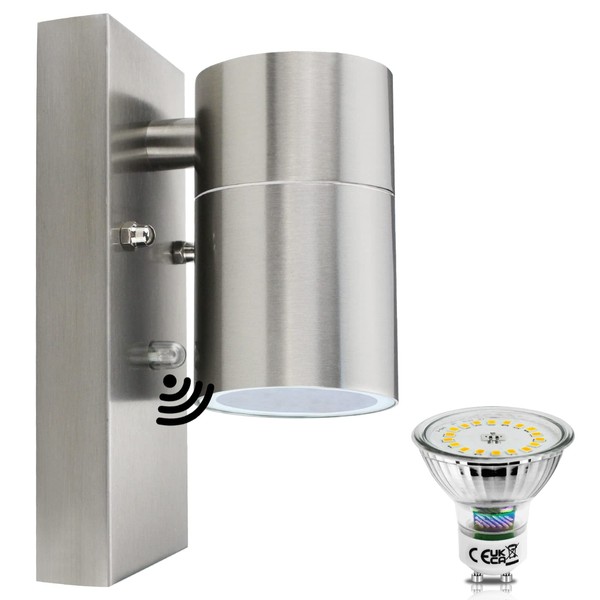 Allesgute Dusk Till Dawn Outdoor Wall Lights Mains Powered Stainless Steel Security Lighting with Sensor for Porch Front Door, 6000K GU10 Bulb Incl.