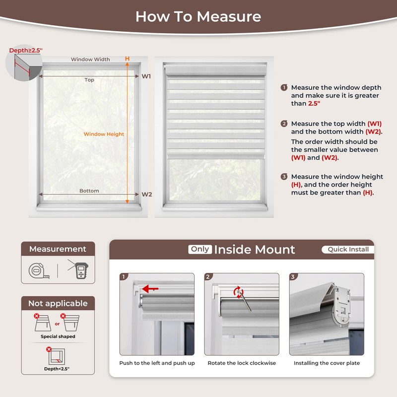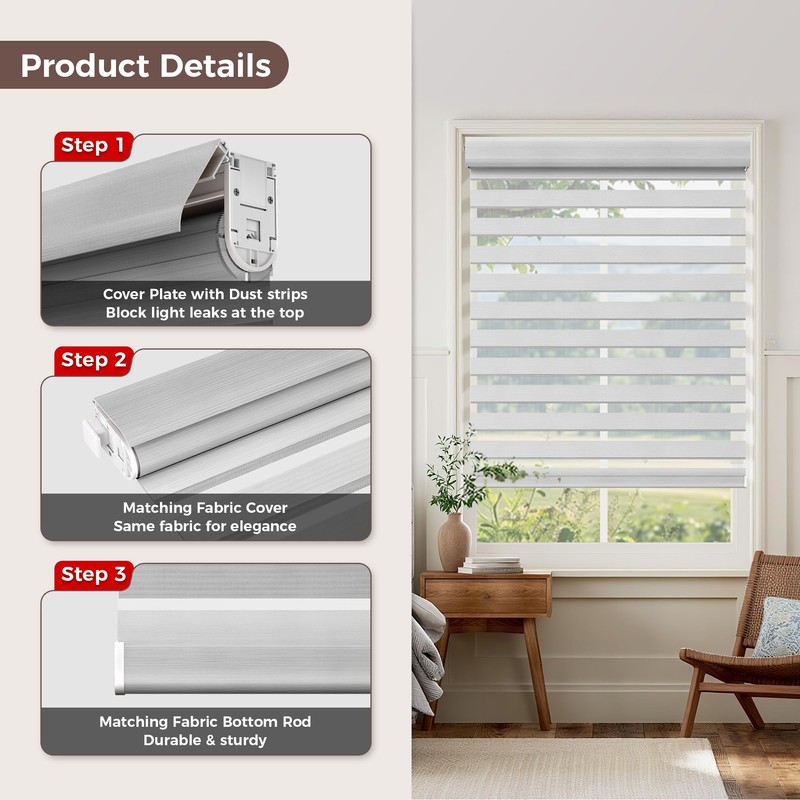 - 【Dual-Layer Design】Our zebra blinds feature high-quality dual-layer fabric that filters light by day and ensures full privacy at night. The design also blocks harmful UV rays, offering year-round comfort and protection for any room