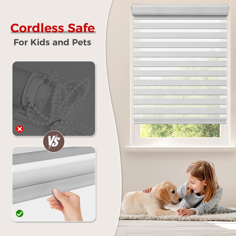 - 【Cordless Free-Stop Safe System】Enjoy smooth, cordless operation with our zebra blinds—no tangles, no hazards. Stop at any height with ease. A safe, stylish choice for homes with children or pets. Perfect for any indoor window