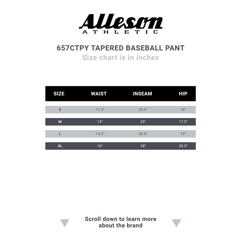 Alleson Athletic Standard Youth Crush Tapered Baseball Pant (Style 657ctpy), White, Medium