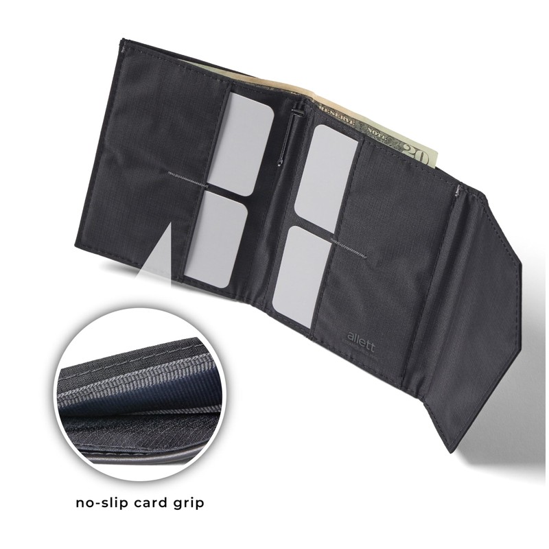 Allett Envelope Wallet, Jet Black – Nylon, RFID Blocking, Trifold, Slim, Minimalist, Water Resistant, Thin - Holds 4-24+ Cards, Bills, Coins - For Men & Women