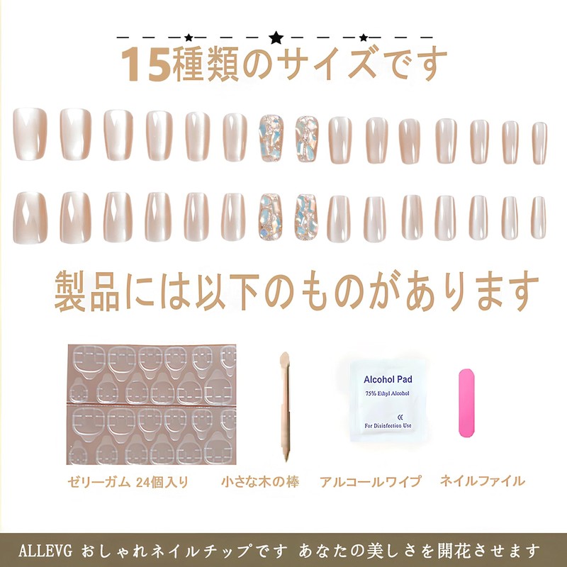 • 【内容】ネイルチップ30枚、両面テープ24枚、アルコール綿,付属ウッドスティック,爪ヤスリ1枚。私たちはすべての顧客に満足できる製品とサービスを提供することに力を入れています。製品に不満や欠陥のある商品を受け取った場合、商品を受け取ってから30日以内にアフターサービスを申請してください。