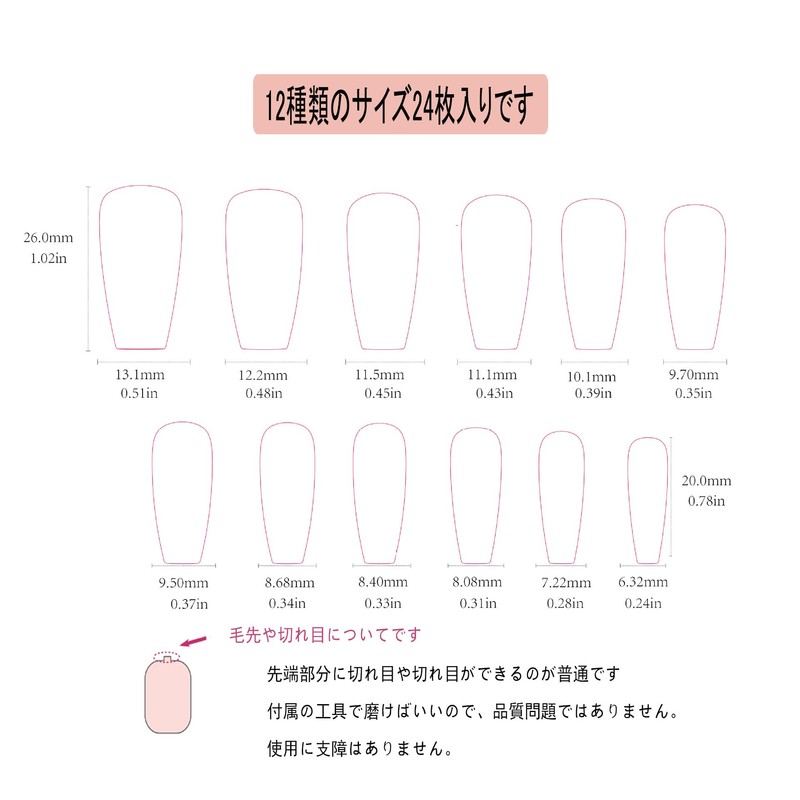 - Package Contents: 24 nail tips, 24 double-sided tape, 1 nail file, 1 wooden stick. If you receive the product that is not satisfied or defective, please contact us for after-sales service within 30 days after you receive the item