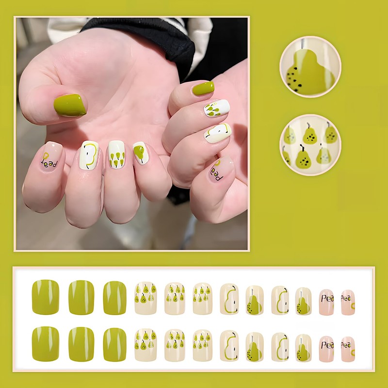 ALLEVG Nail Tips, 24 Pieces, Short, Avocado Green, Spring, Summer, Popular, Japanese Style, Cute, Simple, Stylish, Coming of Age Ceremonies, School Entrance Ceremonies, Graduation Ceremonies, Weddings