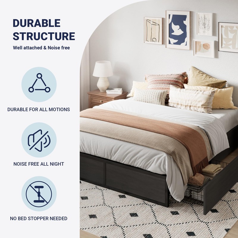 - Configurable Storage: Two under-bed drawers may be repositioned along any side to accommodate evolving spatial requirements.