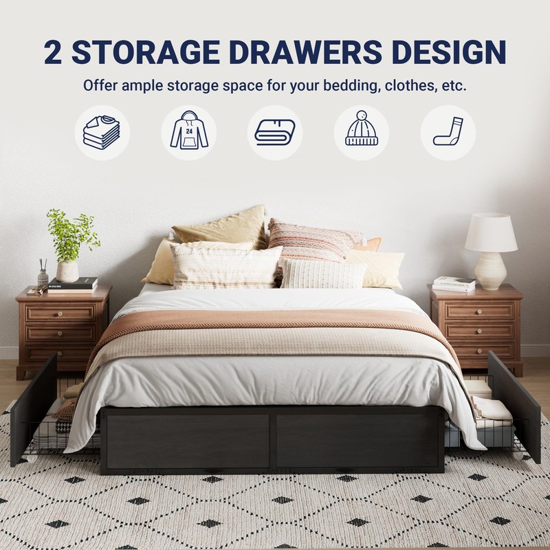 Allewie Platform Bed Frame with 2 Configurable Under-Bed Drawers,Full Size Heavy Duty Metal Base,No Box Spring Needed,Black