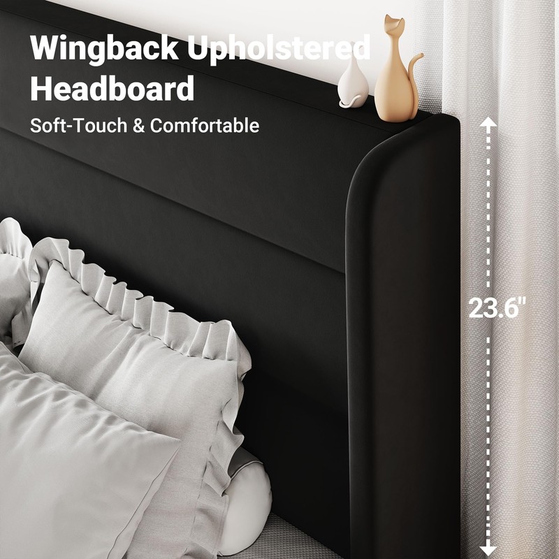 Allewie Queen Size Platform Bed Frame with Velvet Upholstered Wingback Headboard, No Box Spring Needed, Under Bed Storage Space, Strong Wooden Slats, Modern Mattress Foundation, Easy Assembly, Black