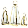 Allgala 3-PC Set Jumbo Luxury Modern Indoor/Outdoor Hurricane Candle Lantern Set with Chrome Plated Structure and Tempered Glass-Taper Gold-HD88021