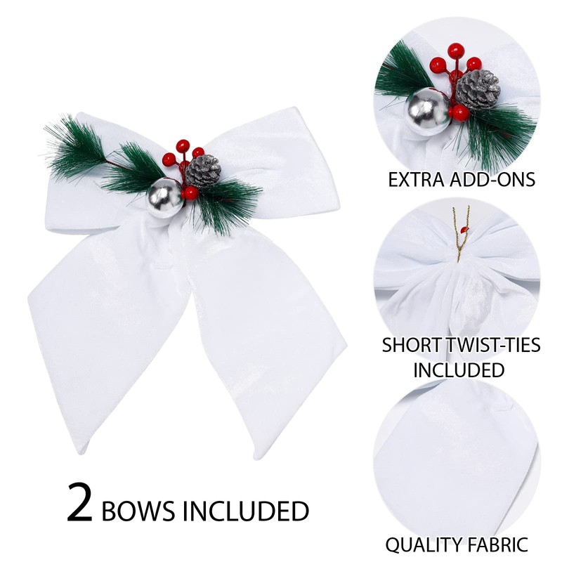 Allgala Christmas Decorative Velvet Bows for Wreath Garland Christmas Tree-2 Pack-10 (20x25cm)-White-XBW92201